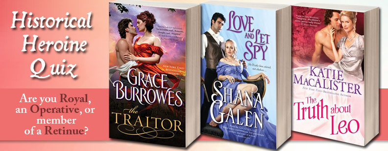 If you choose mostly Cs … then you are equipped to be a master spy like Jane Bonde from Love and Let Spy by Shana Galen. Jane is smart, cunning, and loyal, but she has her weaknesses too. Her latest weakness goes by the name Dominic Griffyn. Planning a wedding and defeating a villain intent upon the destruction of England is tricky, but if you’re the sort who multitasks easily, then you too have Jane’s unique skills and panache.