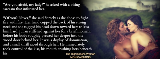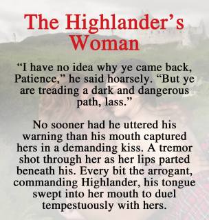Heart beating wildly in her breast, Patience stared up at Julian’s stony expression. There wasn’t the slightest trace of emotion on his face, and tears welled in her eyes. Was he truly lost to her? Had she come to Crianlarich Castle for nothing?