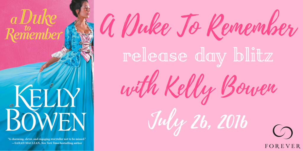 Title: A Duke to Remember Author: Kelly Bowen On Sale: July 26, 2016 Series: A Season for Scandal, #2 Publisher: Forever Format: Mass Market Paperback Price: $5.99 USD Add to Goodreads