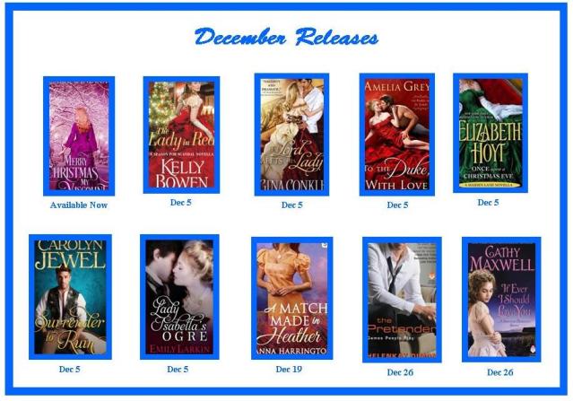 Some good reading coming up in December. My list looks a little shorter this month, which is OK – I’ve got some catching up to do from those great November books, as well as some Christmas stories. Below the graphic, I’ve posted the blurbs for these books, and clicking on the titles will take you right to the Amazon page if you’d like to add any of these goodies to your own TBR pile!